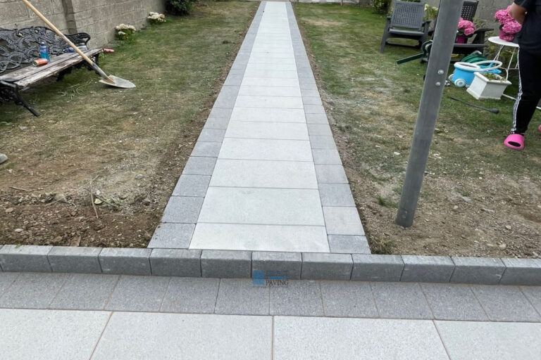 Work Done: Excavated And Removed The Area, Extended The Area As Agreed, Removed The Garden, Graded Off The Area, New Base Foundation Installed, Paving Border Installed, Edging Kerbs Installed, New Pathway