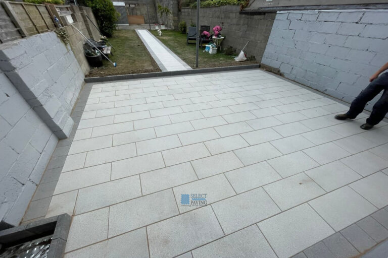 A new patio project has been completed by Select Paving in Bray, Co. Wicklow, featuring silver Newgrange granite flags and a charcoal borderline with brick-on-edge.
