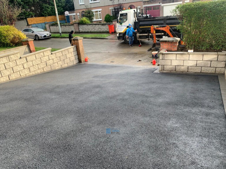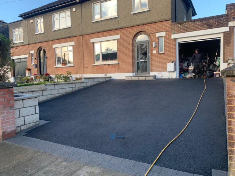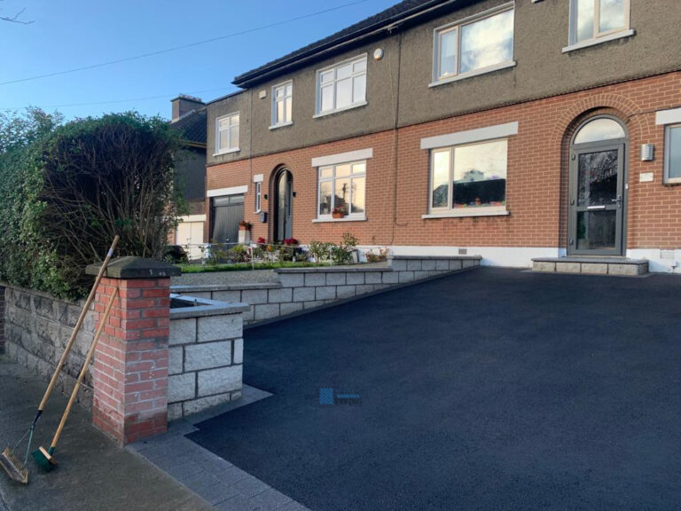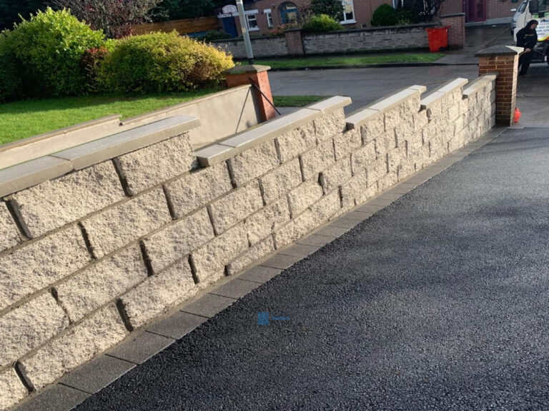Asphalt Driveway with Granite Borderline and New Retaining Walls in Glasnevin, Dublin