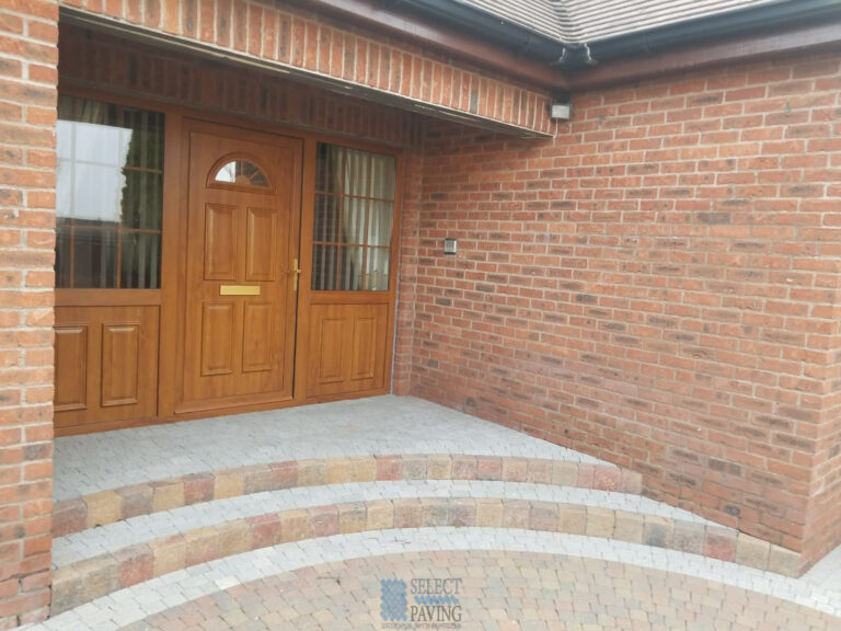 Completed a driveway installation in the Dundrum area. Replaced the old driveway area; the driveway was built using Kilsaran Corrib paving. New step installed. The paved circle was done with Corrib sets and a silver granite border around the driveway and the circle area to make it stand out.