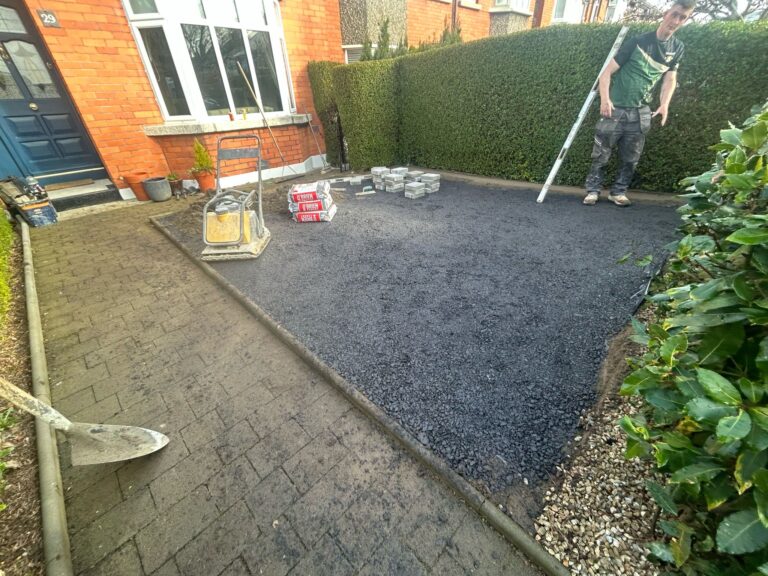 Work Done: Excavated And Removed The Area, New Base Foundation Installed, Paving Border Installed, Natural Stone Border, New Flowerbeds, Flagstones