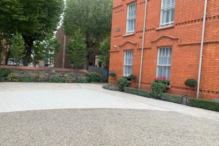 Gravelled Carpark with Silver Granite Slabs and Cobbles at The Wilder Townhouse Hotel in Dublin