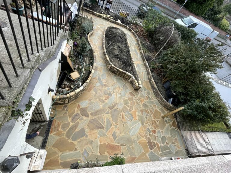 New Patio with Crazy Paving and Flowerbeds in Rathfarnham