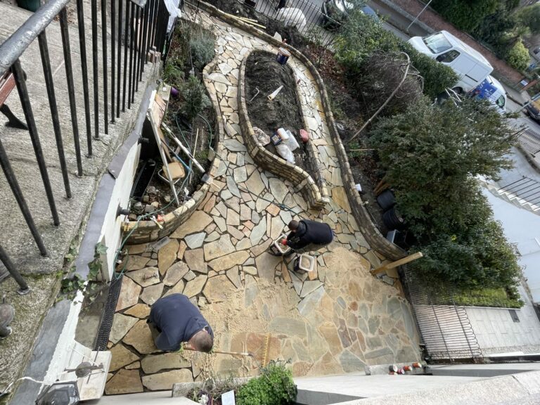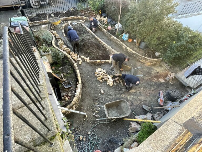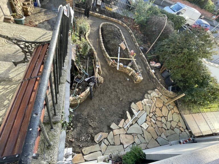 Work Done: Excavated And Removed The Area, New Base Foundation Installed, Built-Up The Levels, New Drainage System, New Walling Built, Membrane Weed Block