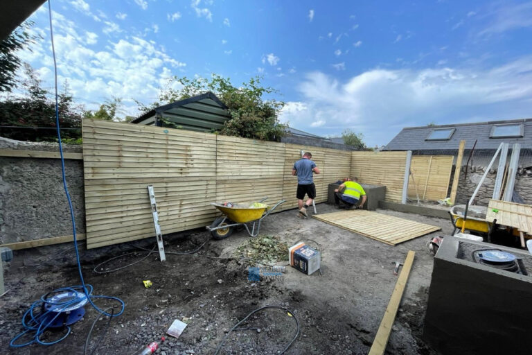 Work Done: New Base Foundation Installed, New Flowerbeds, Flagstones, Rendered Walls, Fencing Installed, Wooden Sleepers