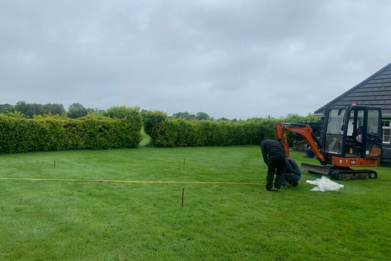 Drainage was installed around the patio area using a french gravel system with a natural grey colour.