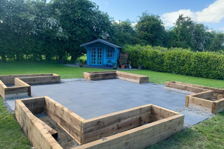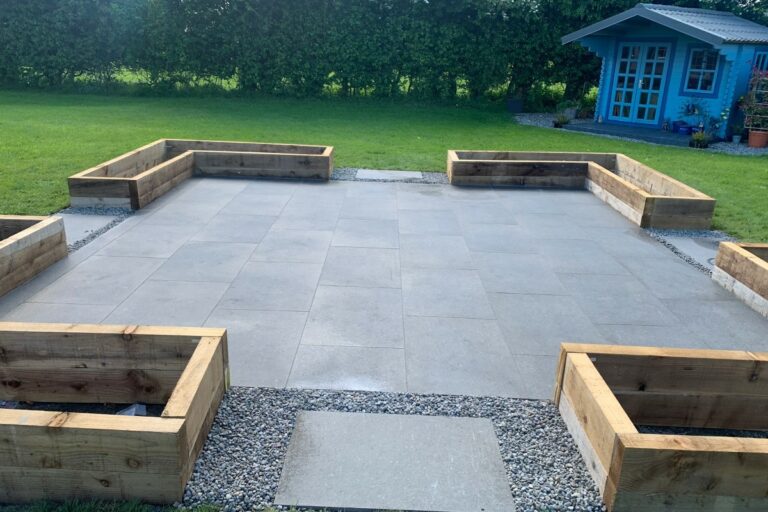 New porcelain tiled garden area installed in Clane, County Kildare by Select Paving.