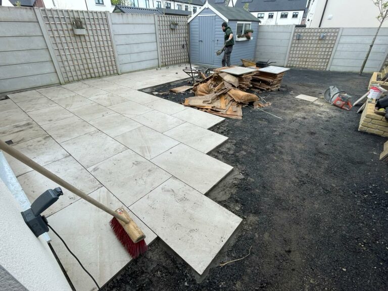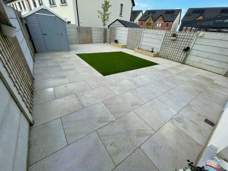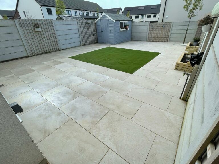 Porcelain Tiled Patio with Artificial Grass in Maynooth