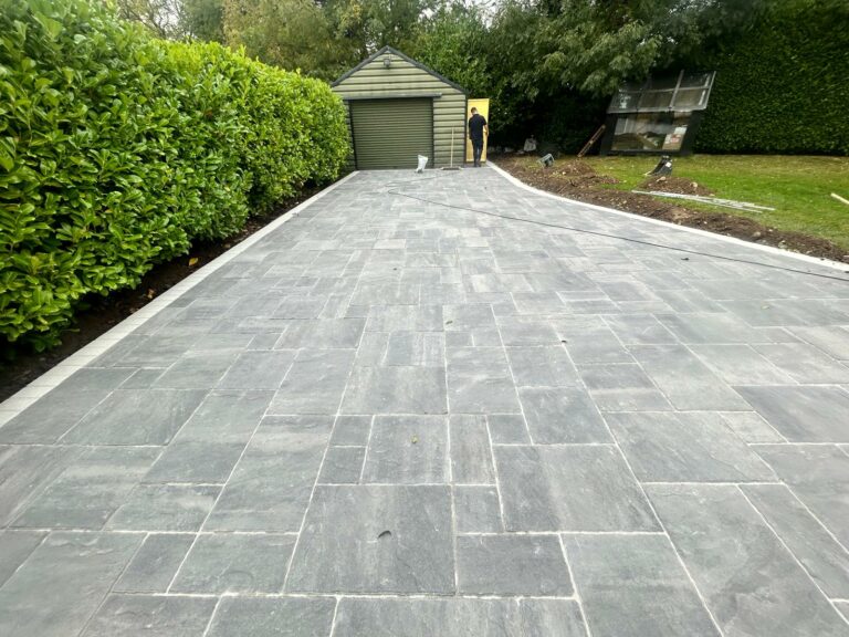 Work Done: Excavated And Removed The Area, Extended The Area As Agreed, New Base Foundation Installed, New Drainage System, Membrane Weed Block, New Step(s), Slabbing, Flagstones