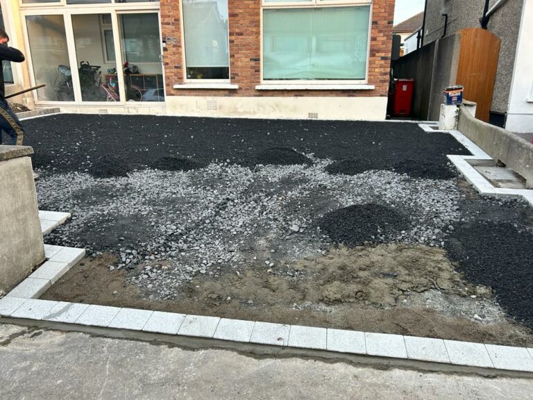 Work Done: Excavated And Removed The Area, New Base Foundation Installed, Paving Border Installed, Edging Kerbs Installed, Membrane Weed Block