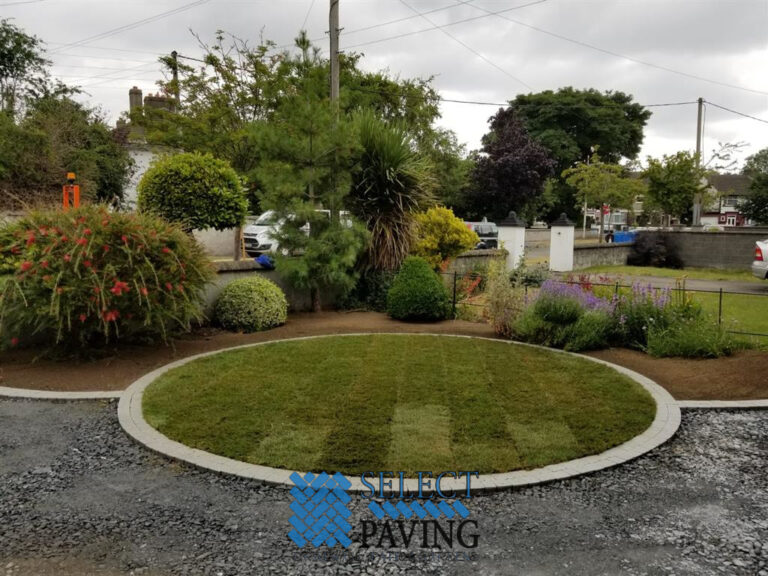 Here is a completed tarmac driveway installation in Shanard Road in Santry, Co. Dublin. The original driveway was removed. New shape and design for the driveway. We created a circular granite set area for the lawn and border area.