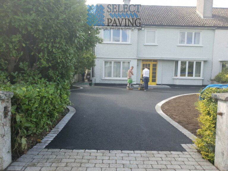 Dug out and removed existing driveway. Extended and redesigned driveway curve to open up the area a little more. Put in new granite edging benched in concrete around driveway. Laid a new tarmac driveway with a 3 inch compressed tarmac finish. Find out more at https://www.selectpaving.ie/l/services/tarmac/